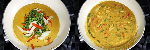 - Then add capsicum and again cover and cook till veggies are 100% cooked and soft (not mushy).